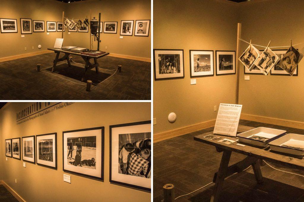 Die Werke von Ansel Adams hingen bei meinem Besuch gerade an den Wänden der Galerie, was eine angenehme Überraschung war. Neben Adams Arbeiten sah ich Drucke von Yoshio Okumoto, einem Fotografen, der im Heart Mountain Camp lebte. Die Gegenüberstellung seiner schroffen DIY-Drucke gegenüber der unberührten und optimistischen Kunst von Adams war auffallend. Der Kontrast schien vor etwa 77 Jahren das Ungleichgewicht im amerikanischen Volk widerzuspiegeln.